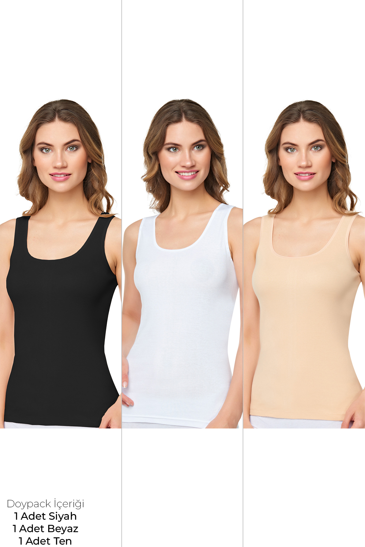 Kadın 3'lü Geniş Askılı Basic Karışık-2 Atlet - Özel Premium Paketinde