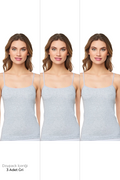 Kadın 3'lü İp Askılı Kalp Motifli Gri Atlet - Özel Premium Paketinde