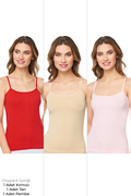 Kadın 3'lü İp Askılı Kırmızı, Pembe ve Ten Renk Atlet - Özel Premium Paketinde