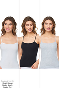Kadın 3'lü İp Askılı Siyah Beyaz Atlet ve Gri Karışık Renk Atlet - Özel Premium Paketinde