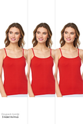 Kadın 3'lü İp Askılı Kalp Motifli Kırmızı Atlet - Özel Premium Paketinde