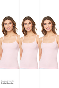 Kadın 3'lü İp Askılı Kalp Motifli Pembe Atlet - Özel Premium Paketinde