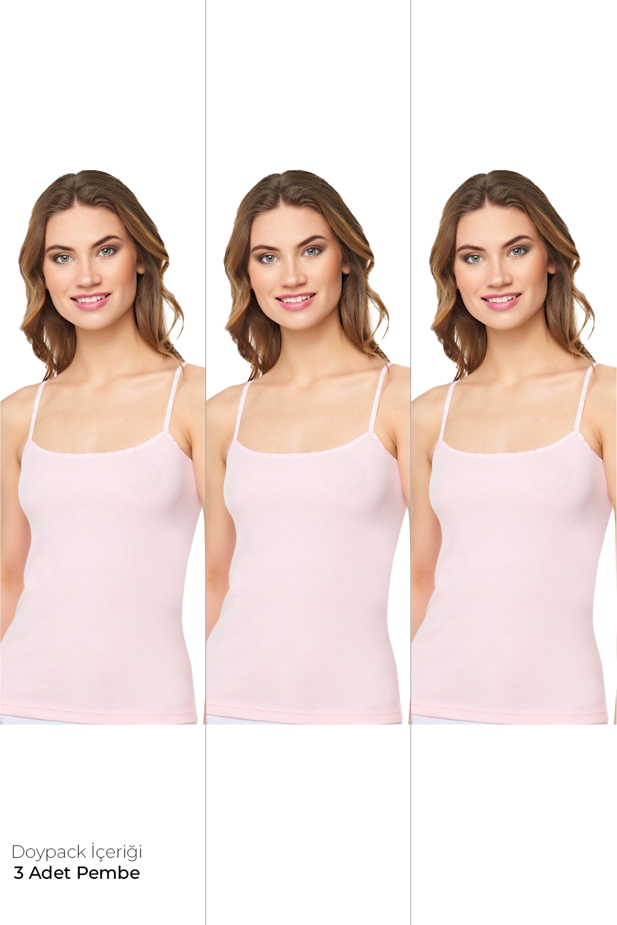 Bu kadın 3'lü ip askılı pembe atlet seti, kalp motifli tasarımıyla dikkat çekiyor. %100 pamuk malzemesiyle üretilmiştir. S-M-L-XL-XXL beden seçenekleri mevcuttur. Özel premium paketinde sunulan bu atlet seti, kalite ve şıklığı bir araya getiriyor.