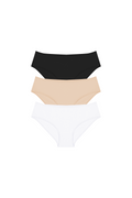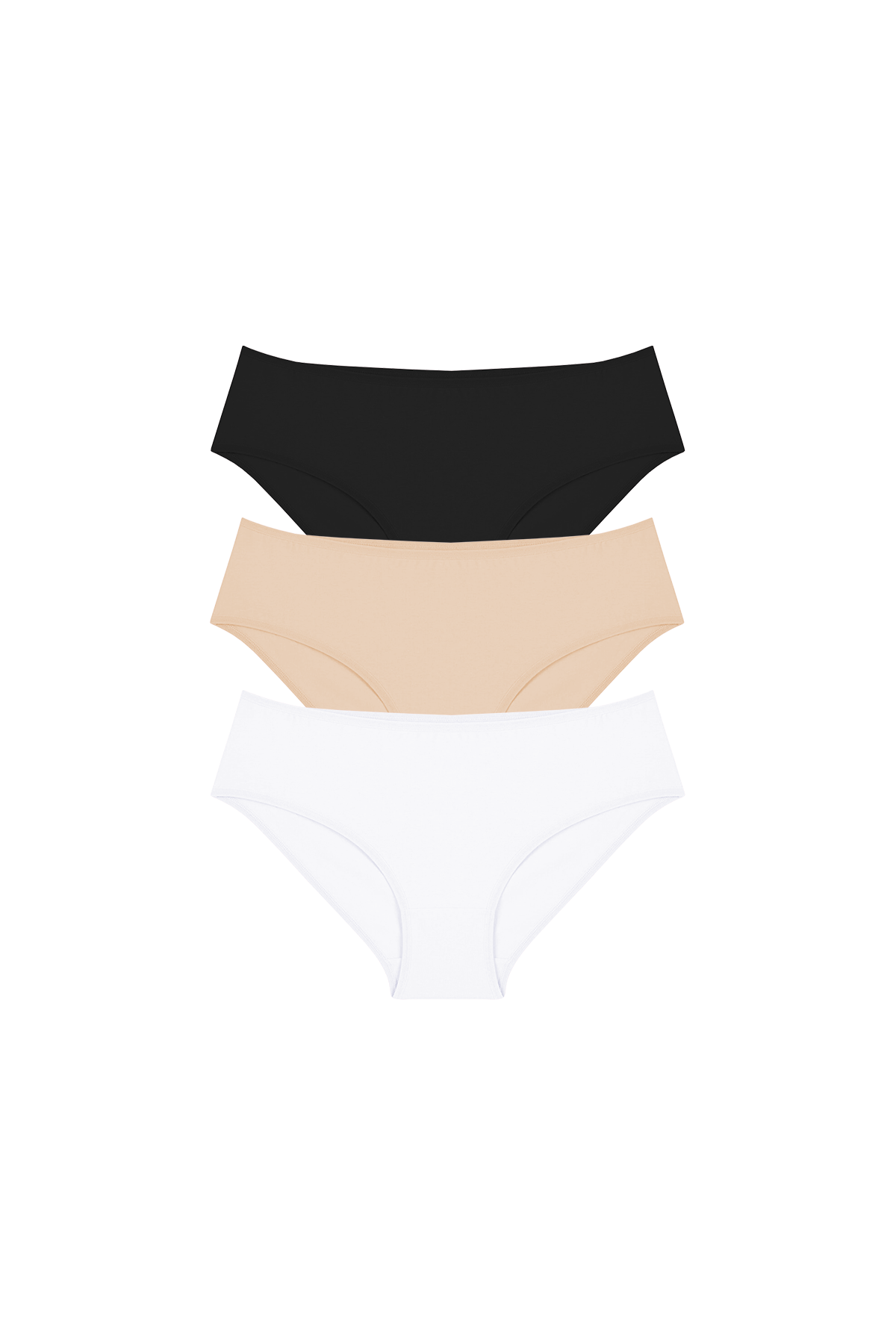 Bu 3'lü siyah, beyaz ve ten renklerinden oluşan slip külot setiyle stilinizi tamamlayın ve konforun tadını çıkarın!