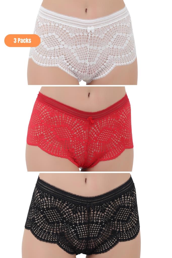 Bu zarif dantelli külot seti, kadınlar için özel olarak tasarlanmıştır. Özel ambalajlı paketinde bulunan bu sette, farklı beden ve renk seçenekleri sunulmaktadır. Siyah, beyaz ve kırmızı renklerdeki külotlar, şıklığı ve konforu bir araya getirir.