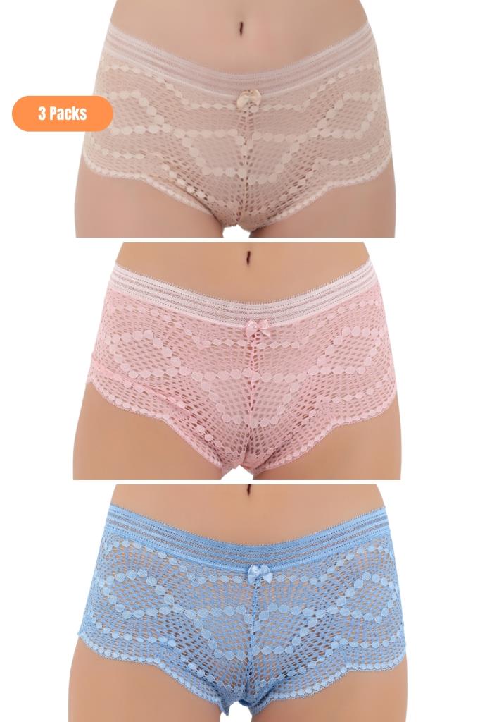 Kadın 3'lü Karışık Zarif Dantelli Külot - Özel Ambalajlı Paketinde