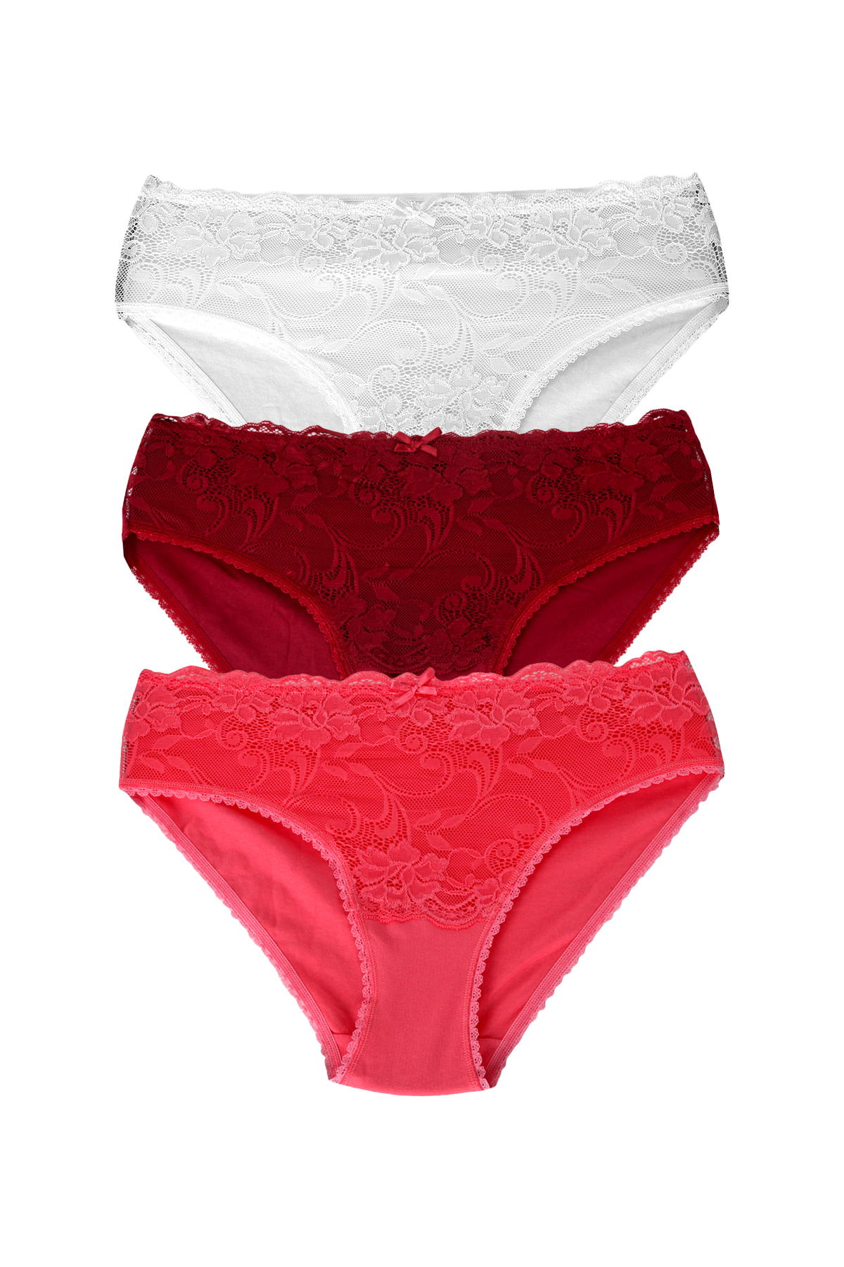 Bu önden dantel detaylı karışık dantelli külot seti, kadınlar için özel olarak tasarlanmıştır. Özel ambalajlı paketinde bulunan bu sette, farklı renk seçenekleri sunulmaktadır. Kırmızı, beyaz ve bordo renklerdeki külotlar, zarif dantel detayları ile şıklığı ve konforu bir araya getirir.