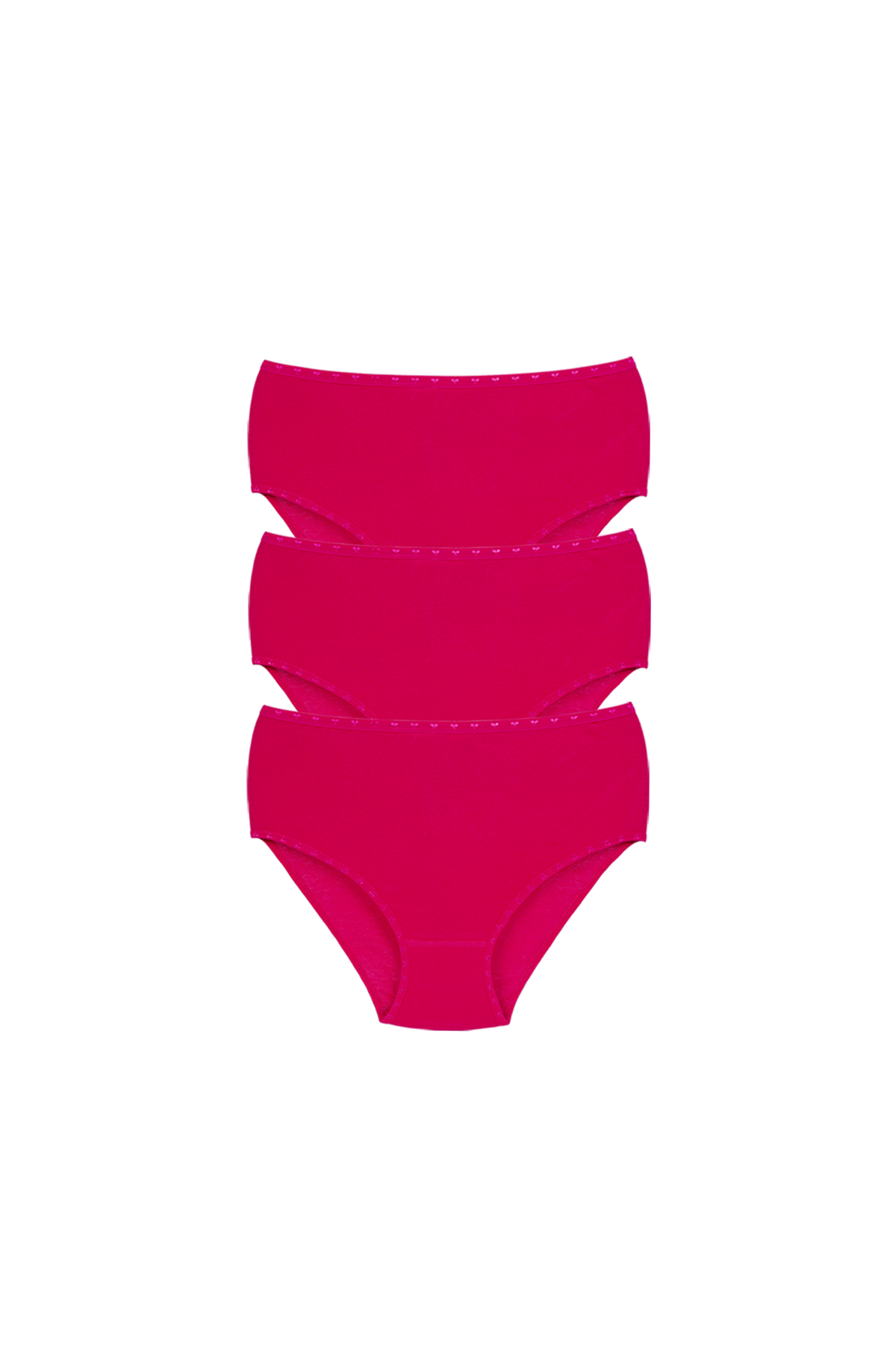 Kadın 3'lü Ribana Yüksek Bel Fuşya Külot - Özel Premium Paketinde