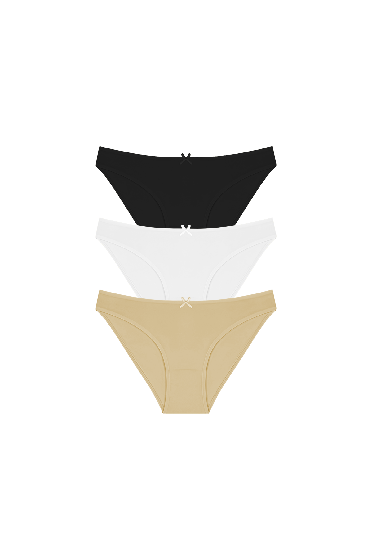 Kadın 3'lü Standart Beden Siyah, Beyaz ve Ten Slip Külot - Özel Paketinde