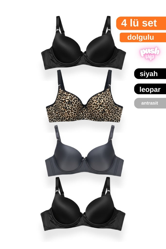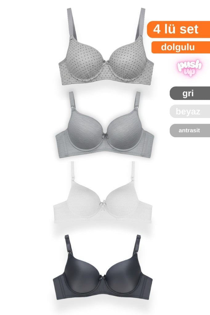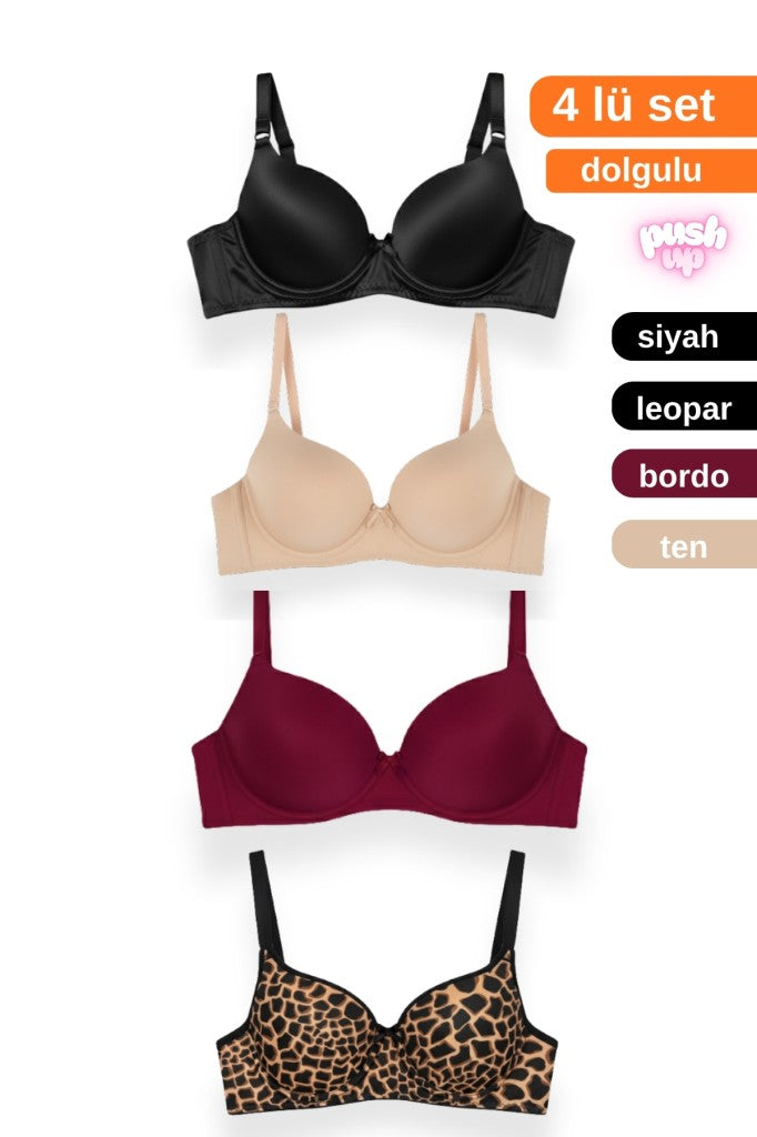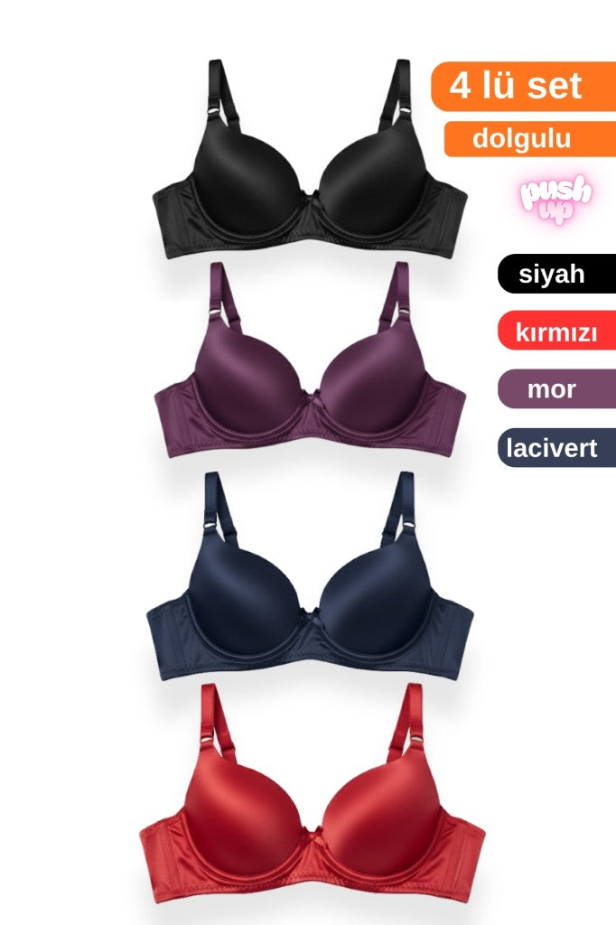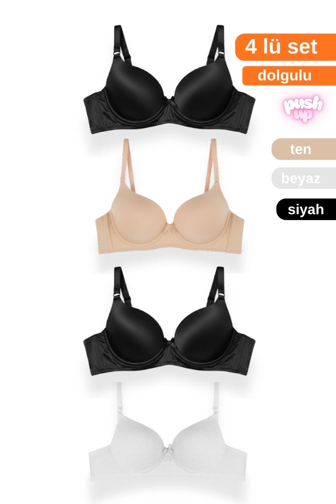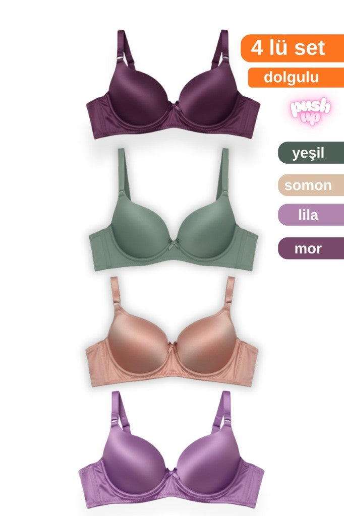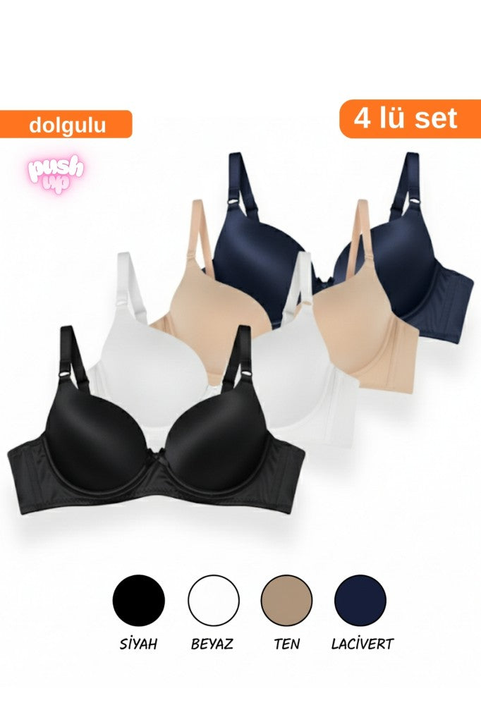 Kadın 4'Lü Dolgulu Destekli Sütyen – Konforlu ve Şık Tasarım