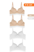 Gün boyu konfor ve şıklığı bir arada sunan Kadın 4'lü Dolgusuz Sütyen, özel tasarımıyla zarif bir görünüm kazandırır.