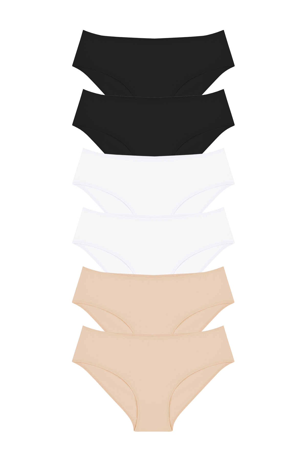 Bu 6'lı siyah, beyaz ve ten renklerinden oluşan slip külot setiyle stilinizi tamamlayın ve konforun tadını çıkarın!