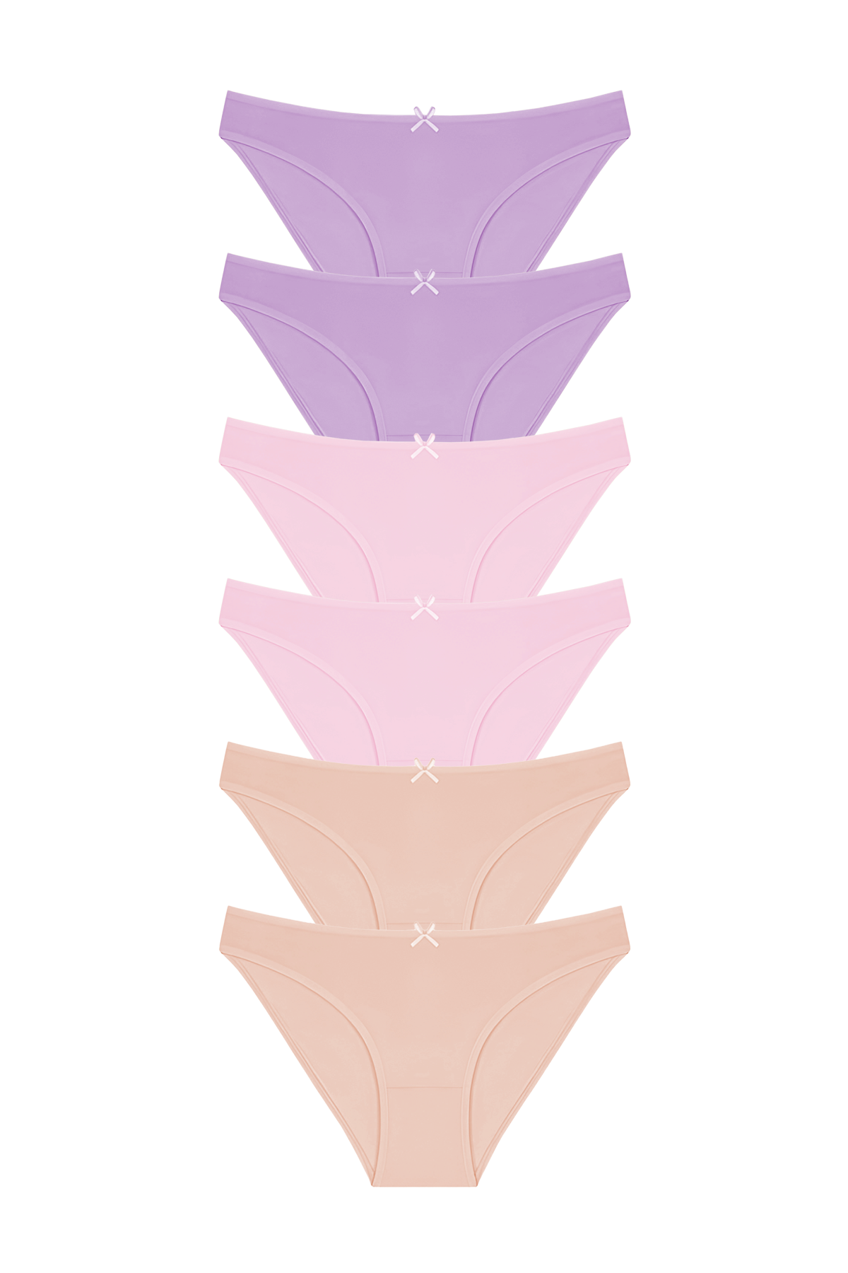 Bu kadın 6'lü slip külot seti, özel paketinde sunulmaktadır. Lila, pembe ve somon renklerinde gelmektedir.