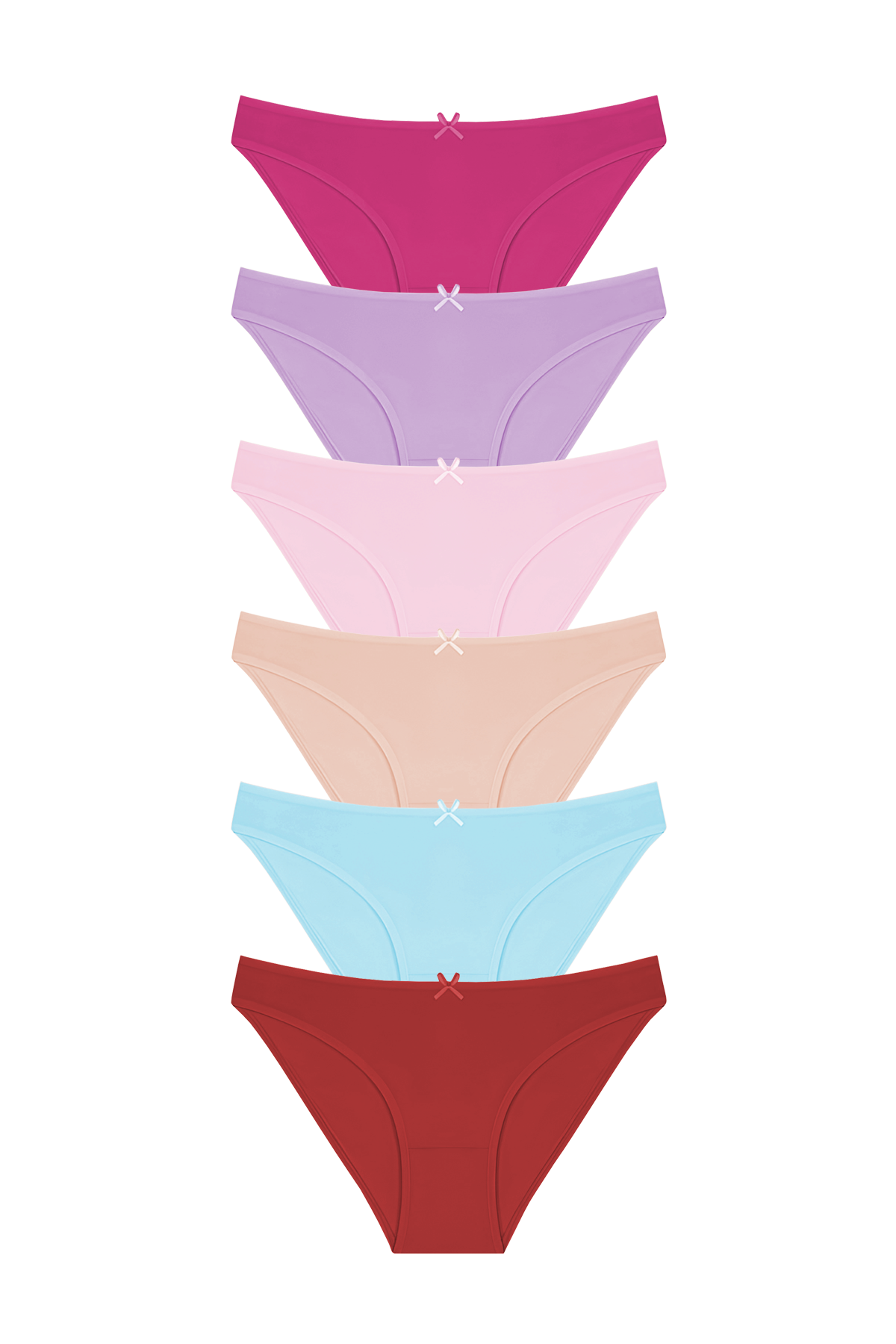 Bu kadın 6'lü slip külot seti, özel paketinde sunulmaktadır. Fuşya, lila, pembe, somon, mavi ve kırmızı renklerde gelmektedir.