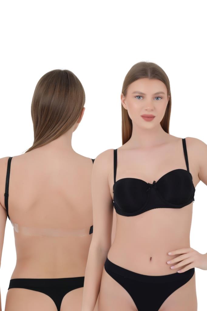 Kadın Balenli Dolgulu Sütyen - Şeffaf Sırt Askısı ile Push-Up Etkisi B CUP