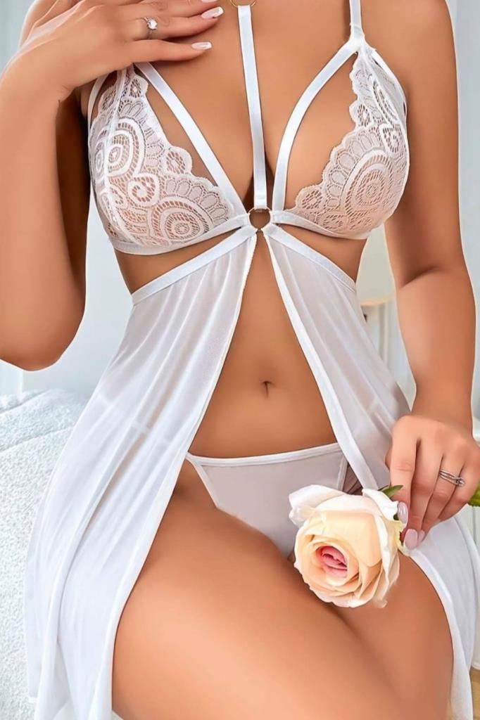 Kadın Beyaz Gelinlik Modeli Dantelli Transparan Seksi Gecelik, hem şıklığınızı hem de zarifliğinizi ön plana çıkarırken, romantik ve etkileyici bir atmosfer yaratır. Kendinizi özel ve çekici hissetmek için bu şık gecelik harika bir tercihtir.