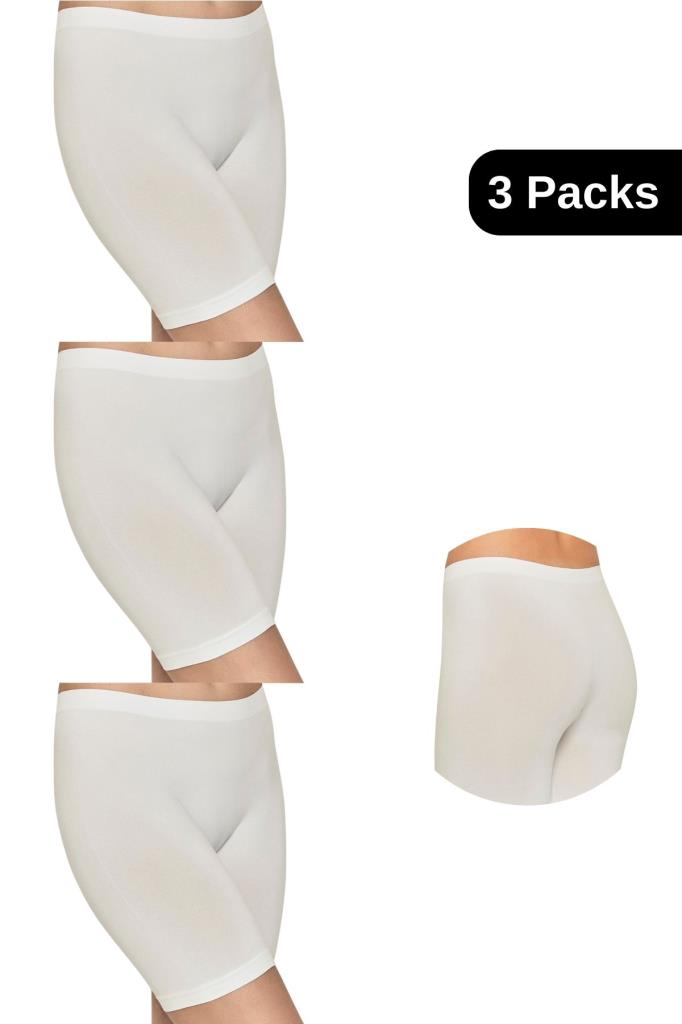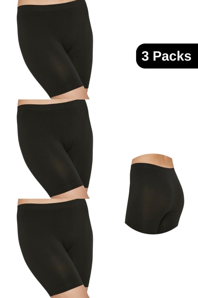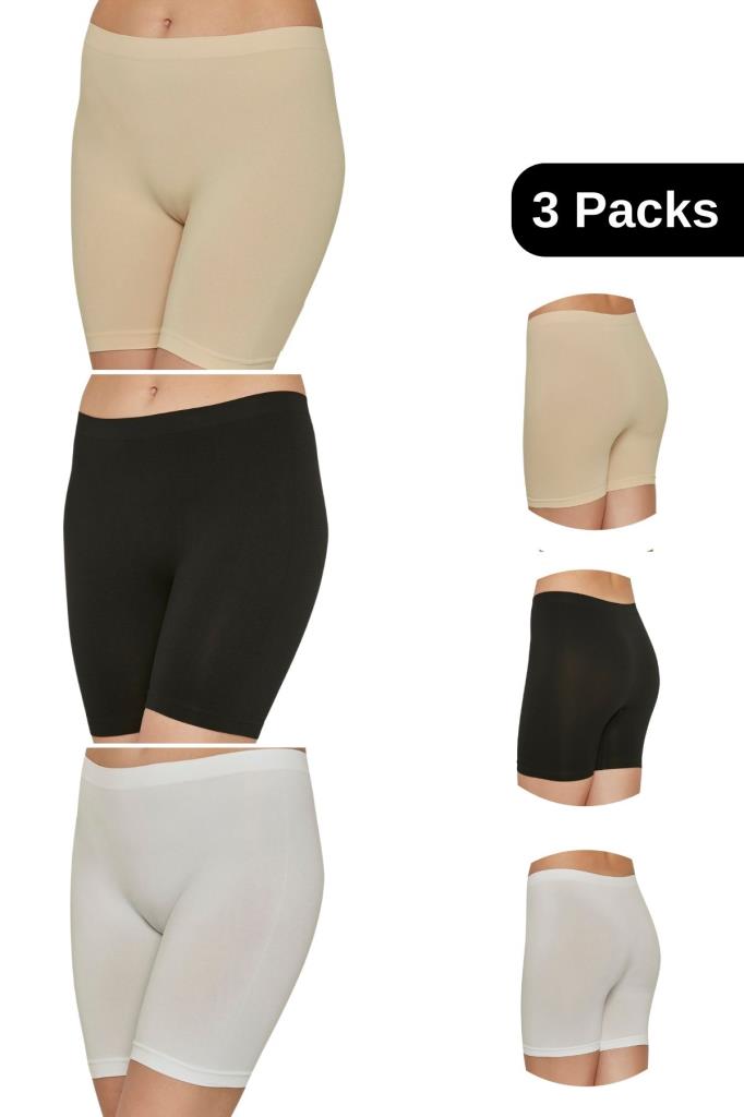 Paket İçeriği: 3 adet kadın boxer külot (Siyah, Beyaz, Ten renk seçenekleri).