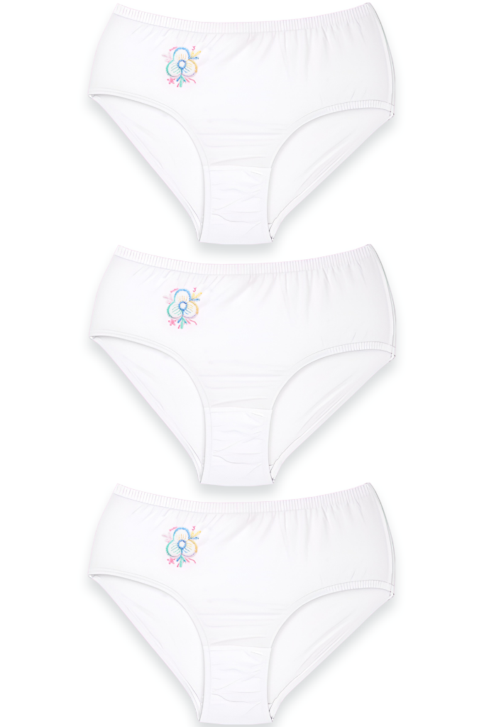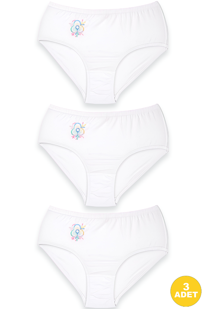 Kadın Çiçek Desenli Beyaz Külot 3'lü Paket