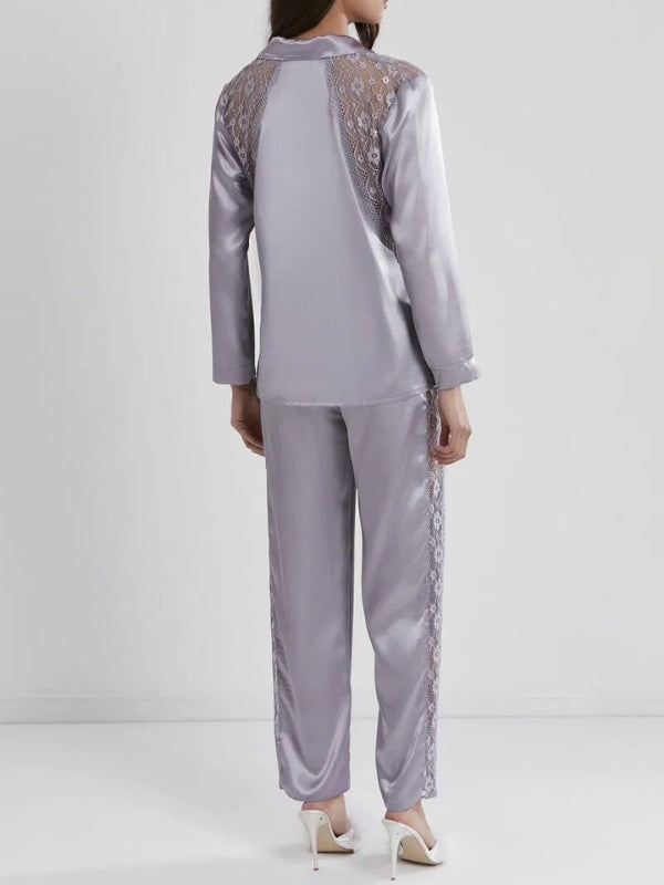 👘 Kadın Dantel Detaylı Saten Pijama Takımı - Royale