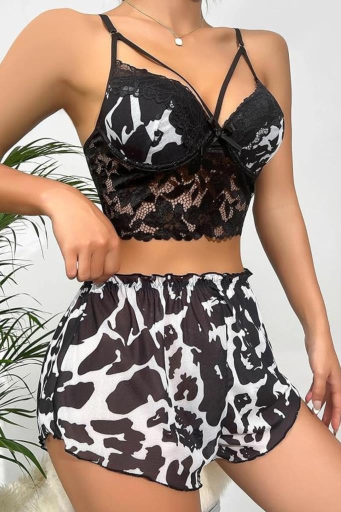 İnce askılı üst ve esnek bel yapısına sahip şorttan oluşan bu takım, sıcak havalarda ferah ve konforlu bir uyku deneyimi sağlar. Fantezi dokusu ve özel kesimi ise klasik pijamalardan sıyrılıp stilinizi ön plana çıkarır.