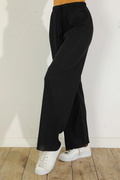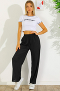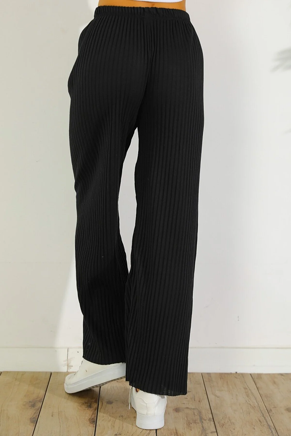 Kadın Fitilli İnce Kumaş Günlük Giyim Rahat Kalıp Siyah Kaşkorse Alt