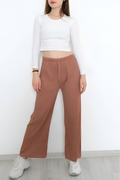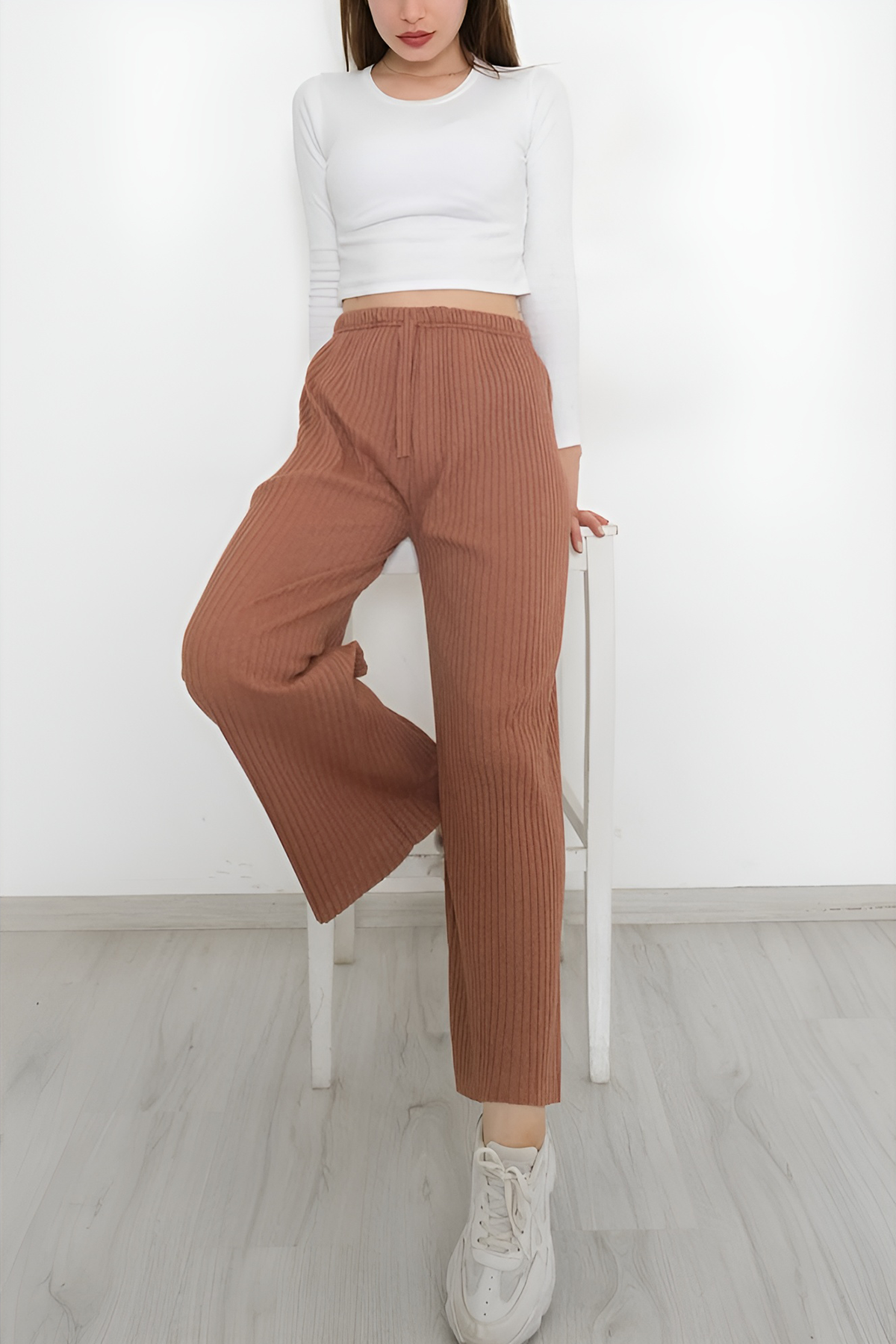 Kadın Fitilli İnce Kumaş Günlük Giyim Rahat Kalıp Somon Kaşkorse Alt