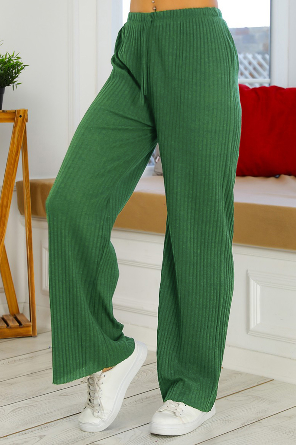 Kadın Fitilli İnce Kumaş Günlük Giyim Rahat Kalıp Yeşil Kaşkorse Alt