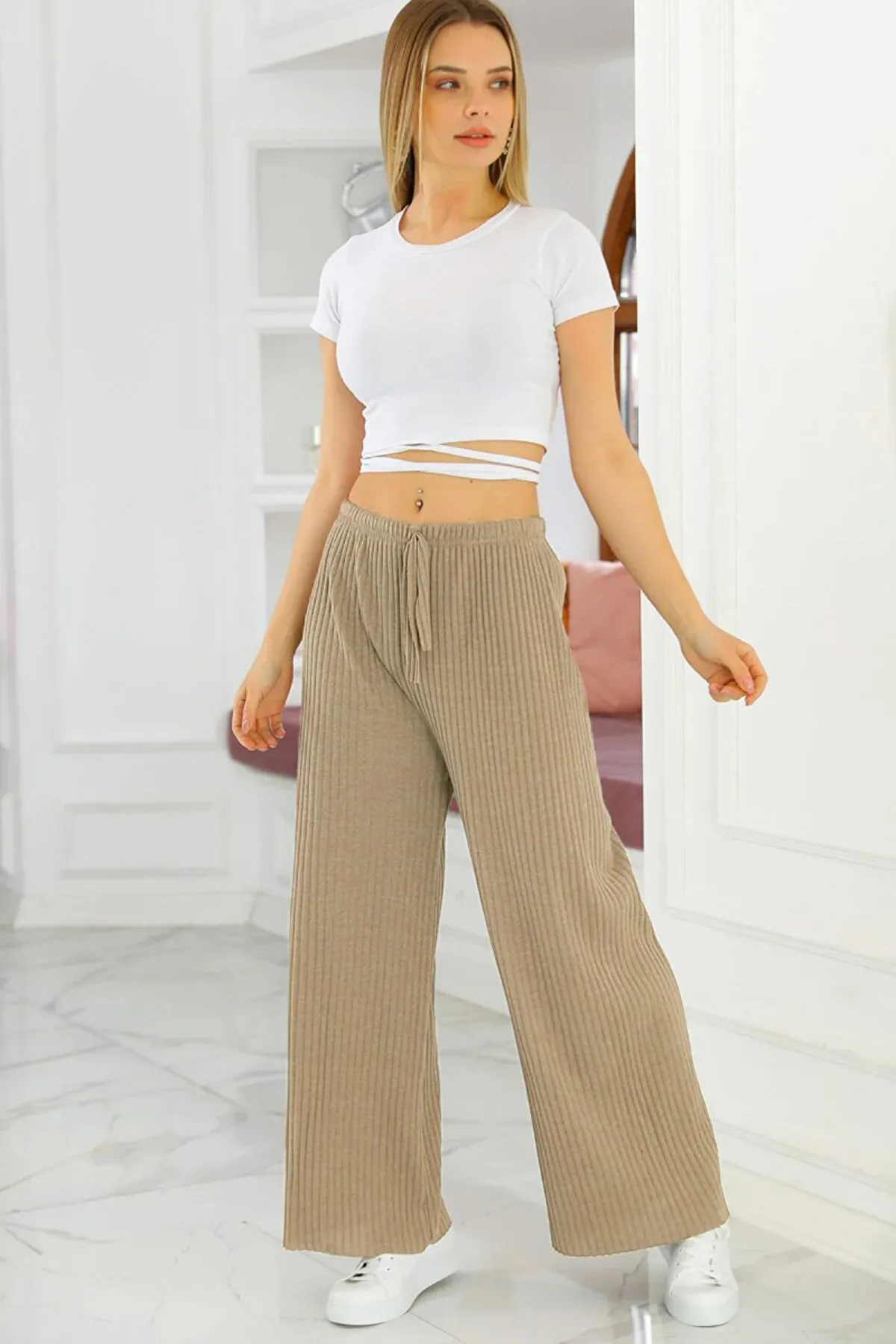Kadın Fitilli İnce Kumaş Günlük Giyim Rahat Kalıp Ten Kaşkorse Alt