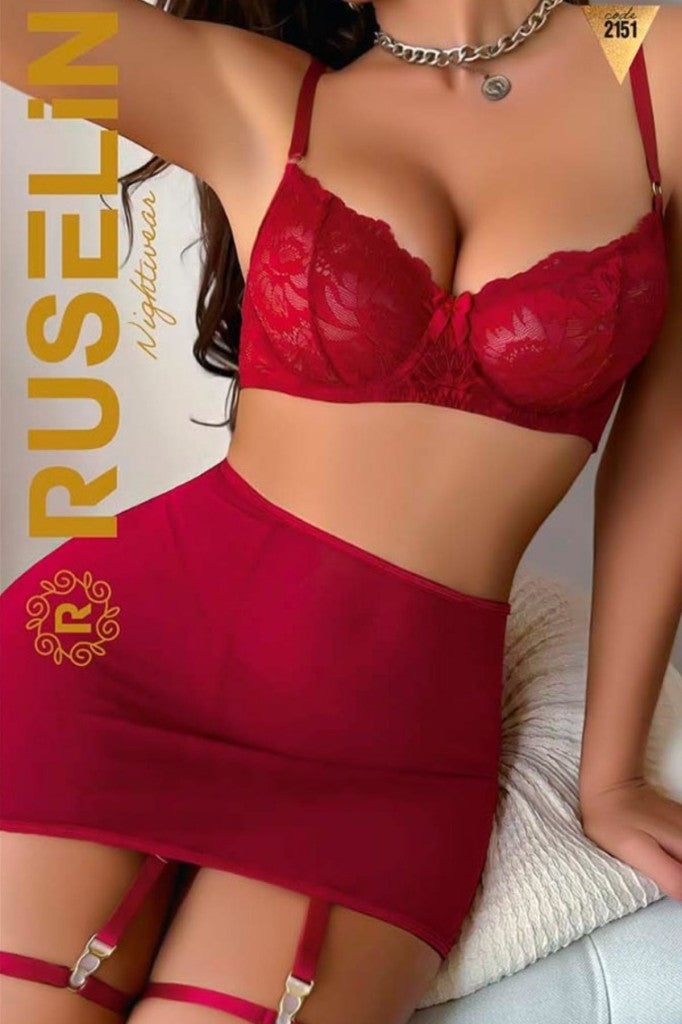 Kadın Kırmızı Dantel Detaylı Transparan Etekli Gecelik Takımı – Cesur, Zarif ve Baştan Çıkarıcı!