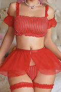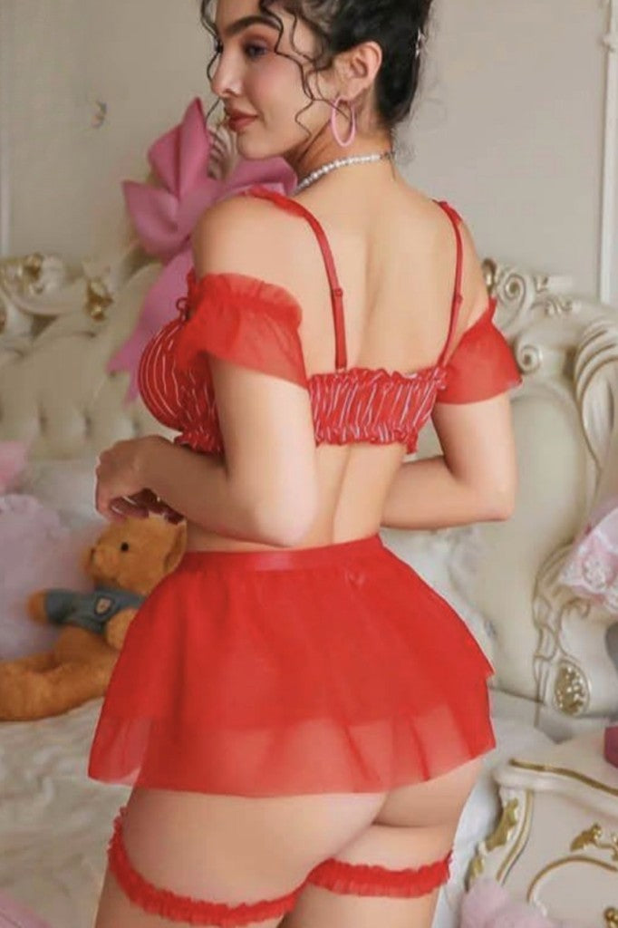 Kadın Kırmızı Yüksek Bel Etekli Takım