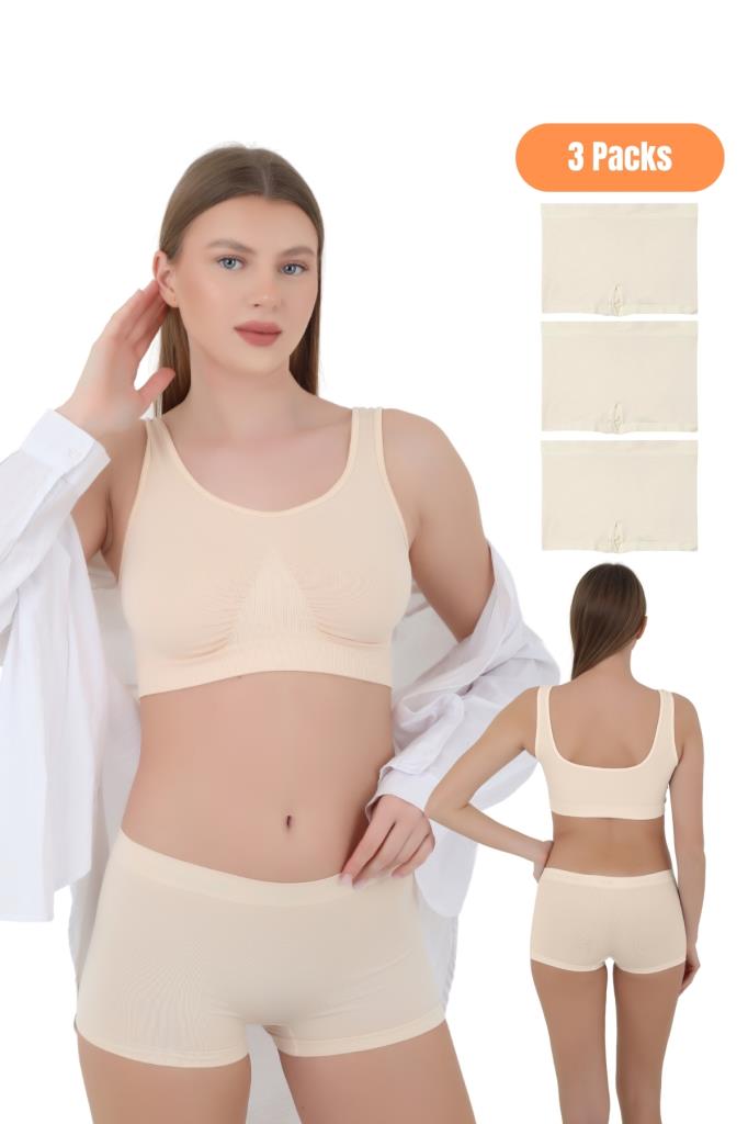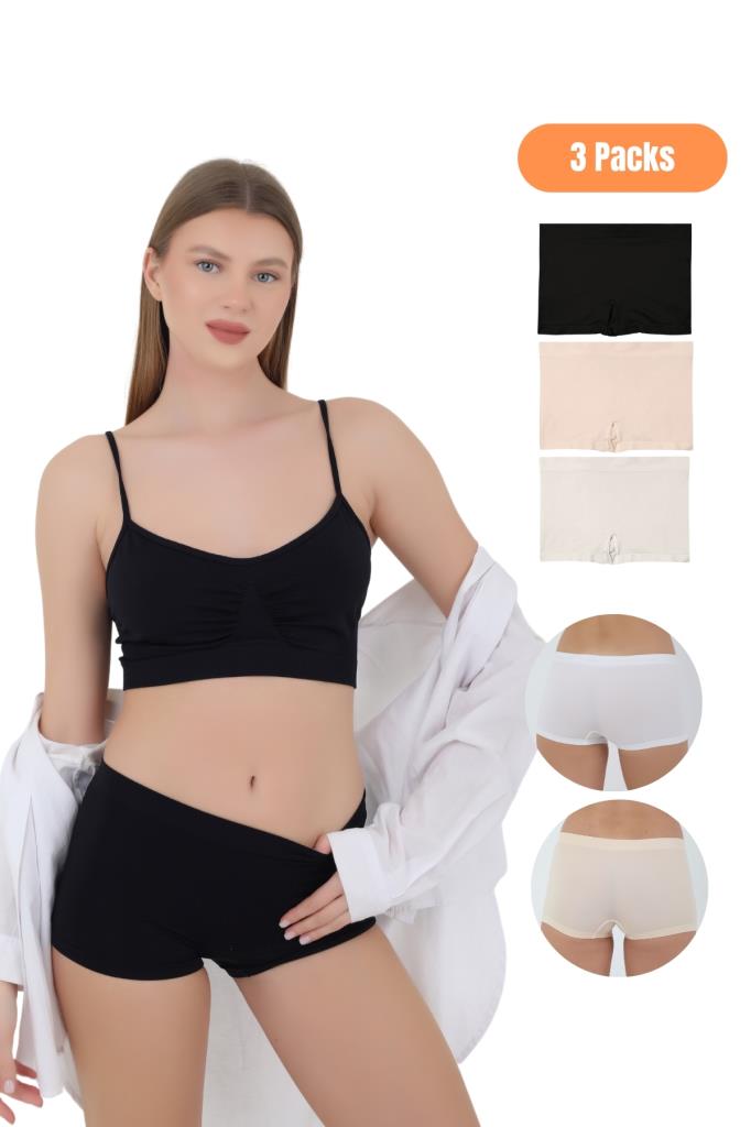 - Paket İçeriği: 3 adet kısa kadın boxer (Siyah, Beyaz ve Ten renk seçenekleri).