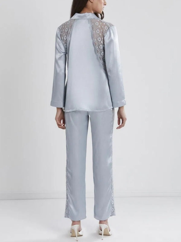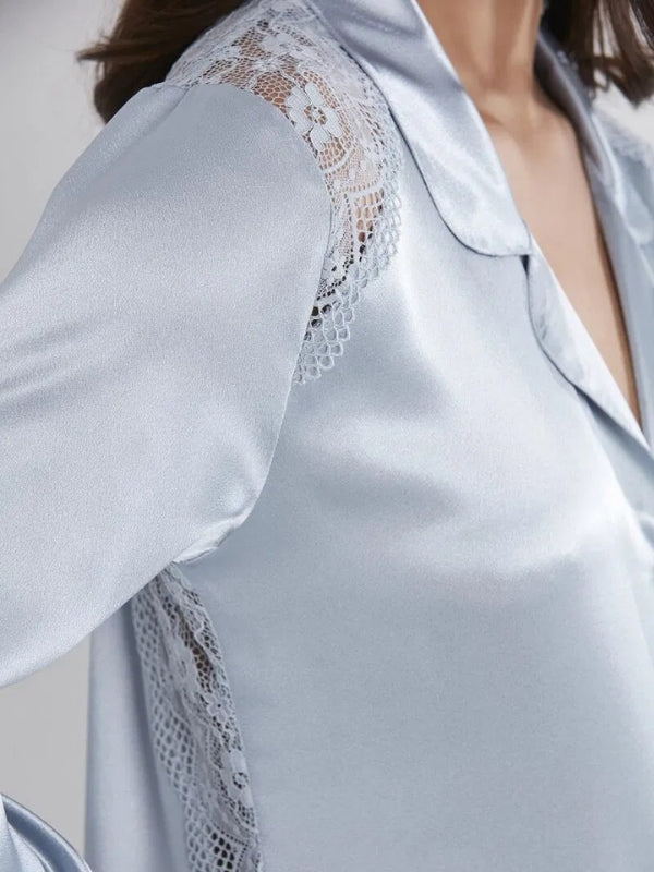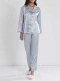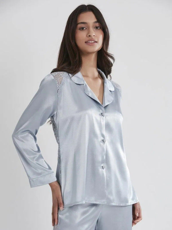 Kadın Mist Saten Dantel Detaylı Uzun Kollu Pijama Takımı