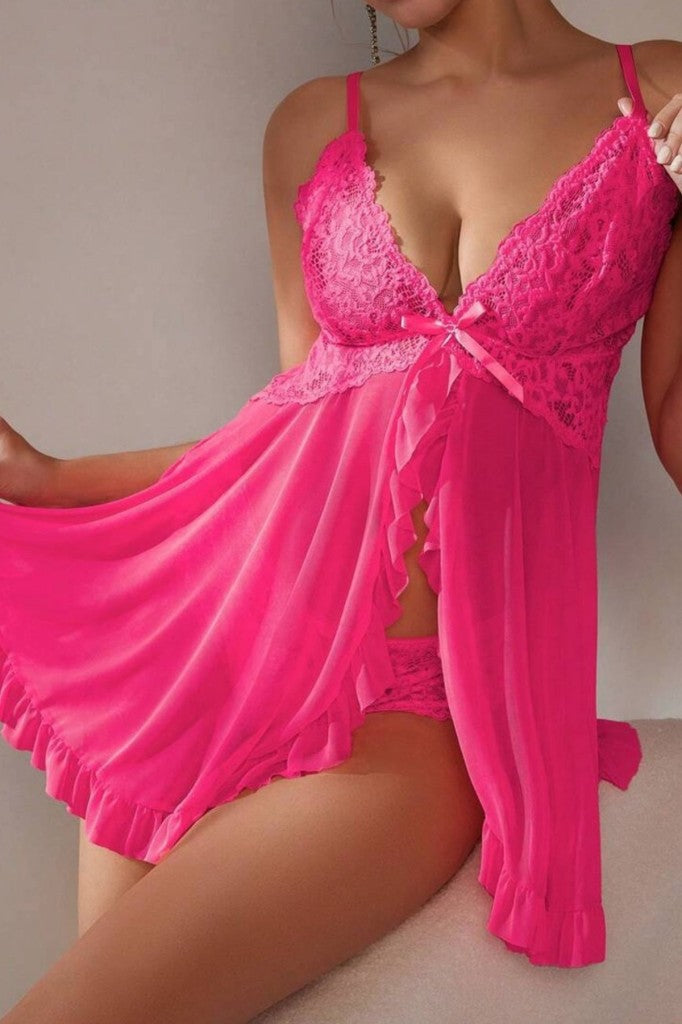 Kadın Pembe Dantelli Fantezi Gecelik Takımı – Zarif ve Baştan Çıkarıcı