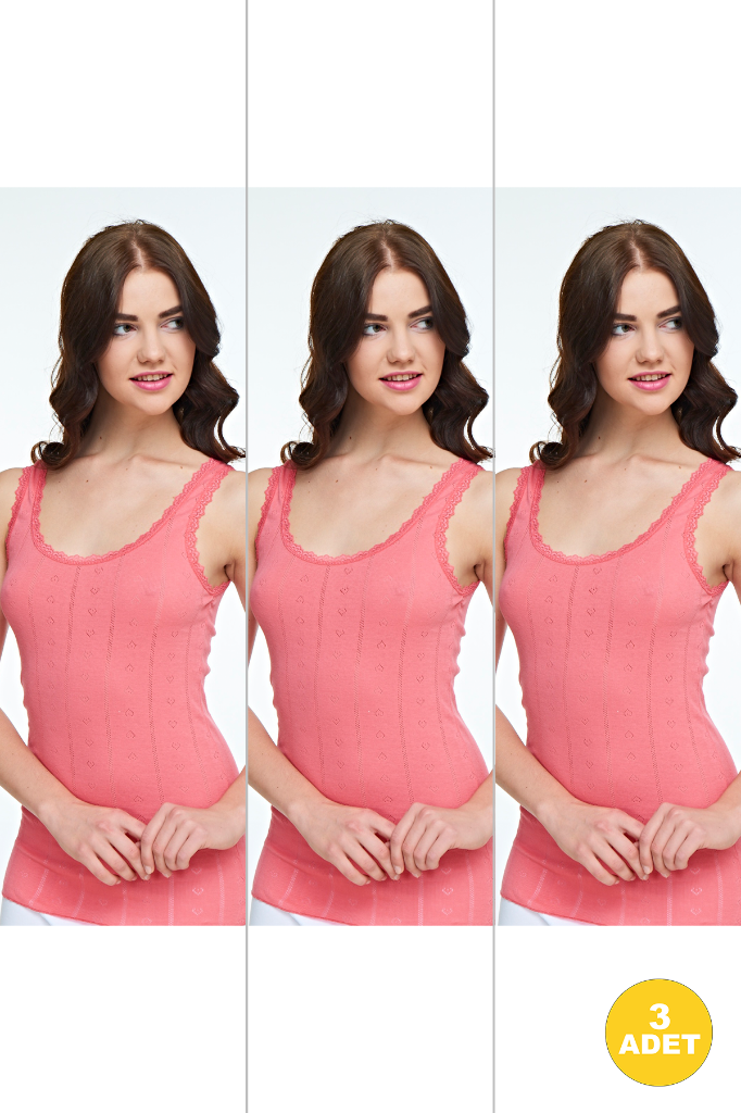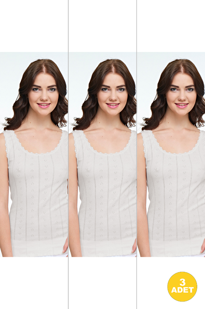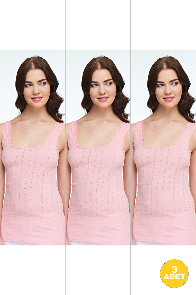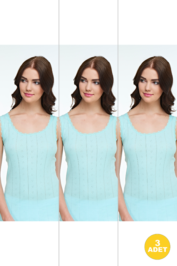 Kadın Renkli Geniş Askılı Jakarlı Atlet 3'lü Paket