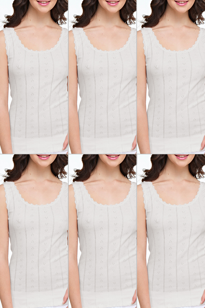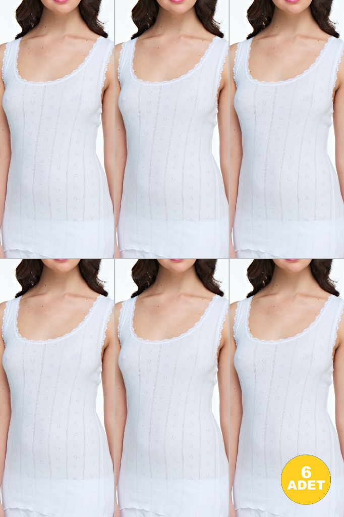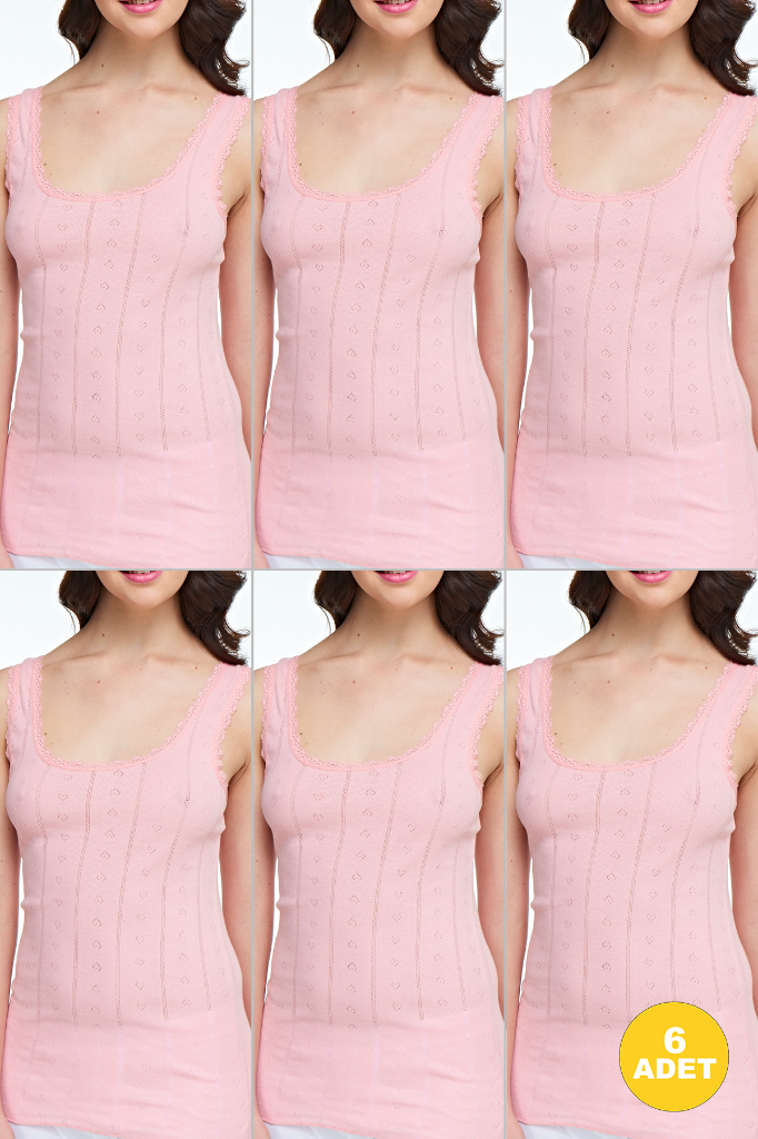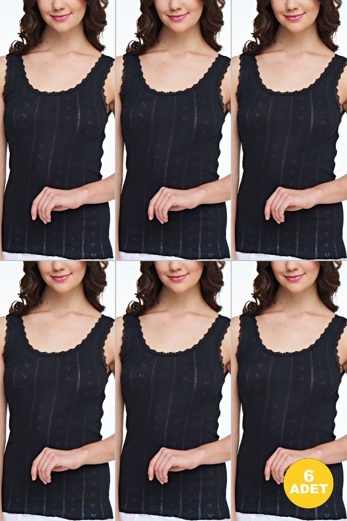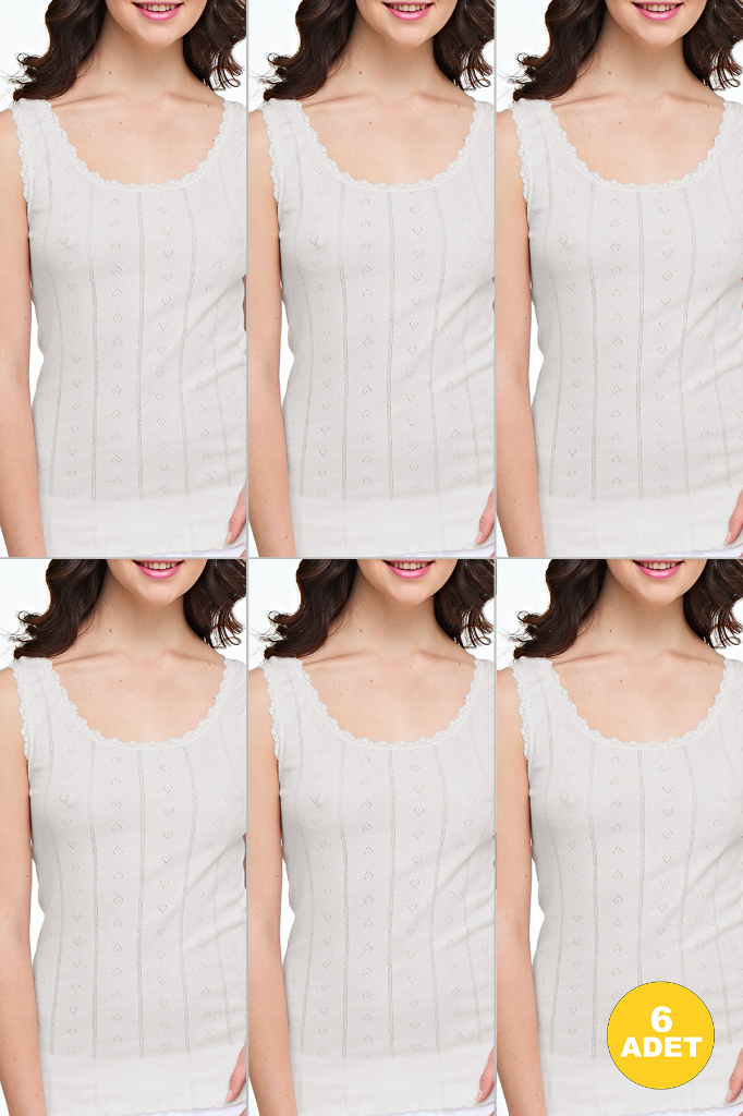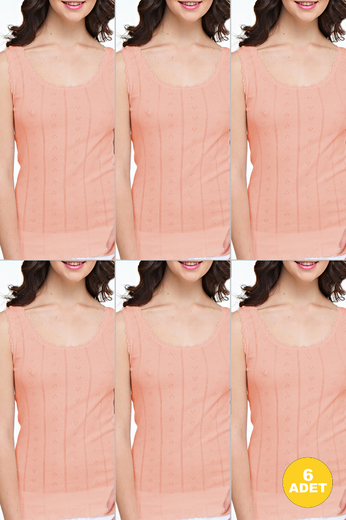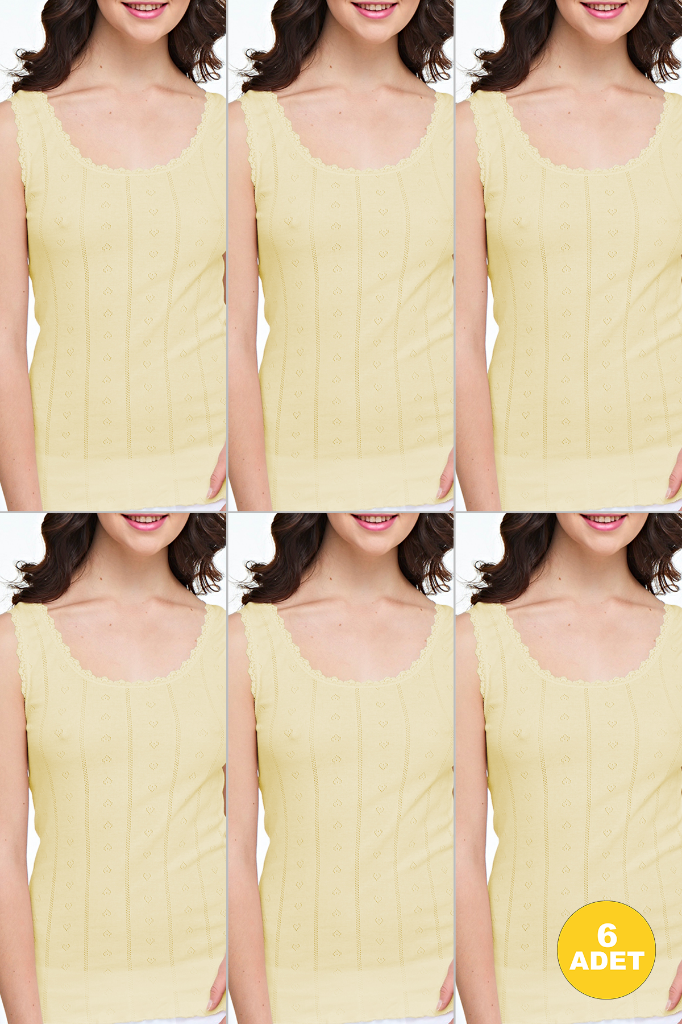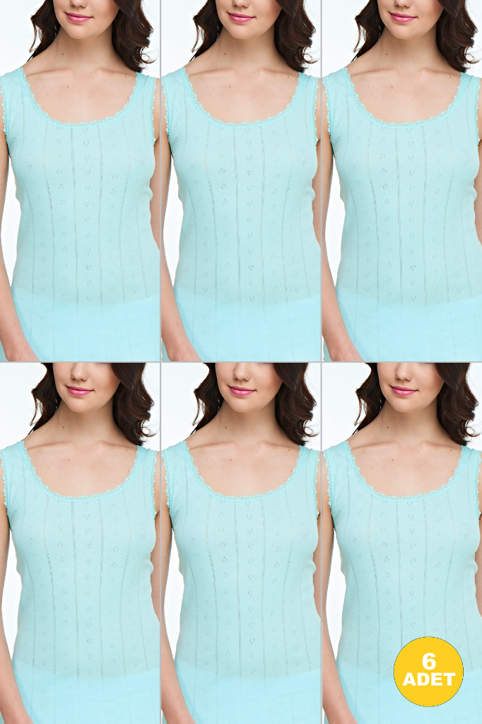 Kadın Renkli Geniş Askılı Jakarlı Atlet 6'lı Paket