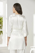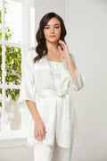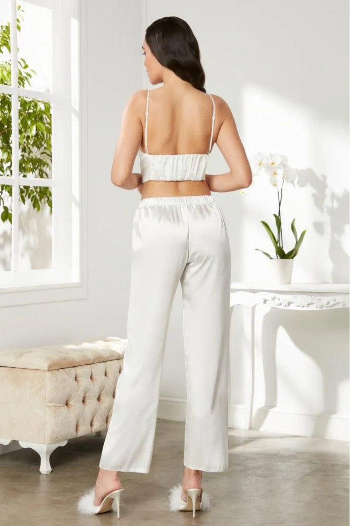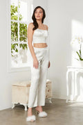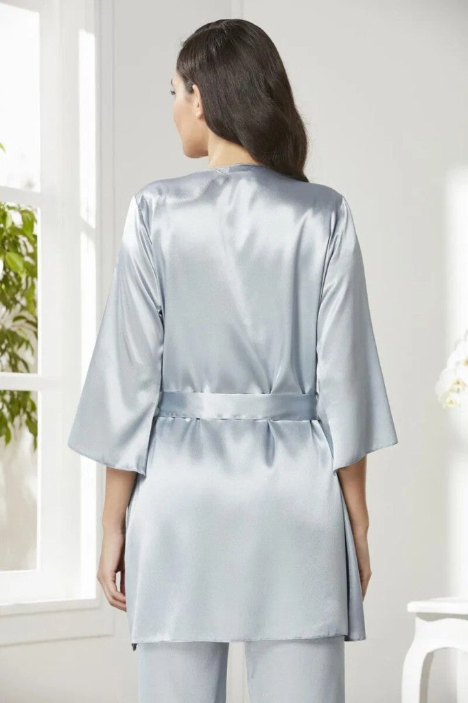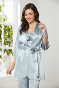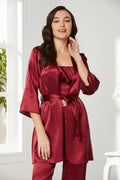 Ev giyimine zarafet ve konfor katan bu 3’lü saten pijama takımı; düğmeli uzun kollu üst, düz paça pantolon ve ayarlanabilir askılı atlet parçasıyla hem şık hem kullanışlı bir kombin sunar. Yumuşak saten kumaşı ile cildinize ipeksi bir dokunuş bırakırken, ekru, bordo ve mist renk alternatifleri ile tarzınıza özel seçenekler sunar.