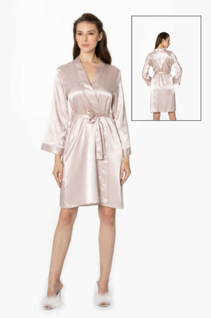 Kadın Saten Bride Sabahlık – Bordo ve Pudra Renk