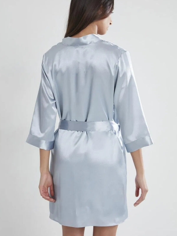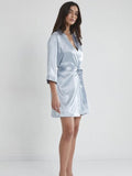 Modern şıklığın ve sade zarafetin birleştiği bu mist (griye yakın açık bej) renkli saten sabahlık, yumuşacık dokusu ve parlak yüzeyiyle günün her anında kendinizi özel hissetmenizi sağlar. Bel kısmındaki saten kuşağı sayesinde vücuda tam oturur; kol ve etek uçlarındaki zarif kesimiyle zarafeti ön plana çıkarır. Günlük kullanımda rahatlık, özel anlarda ise şıklık arayan kadınlar için ideal bir tercihtir.