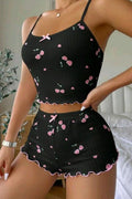 Kadın Siyah Fitilli Askılı Şortlu Pijama Takım