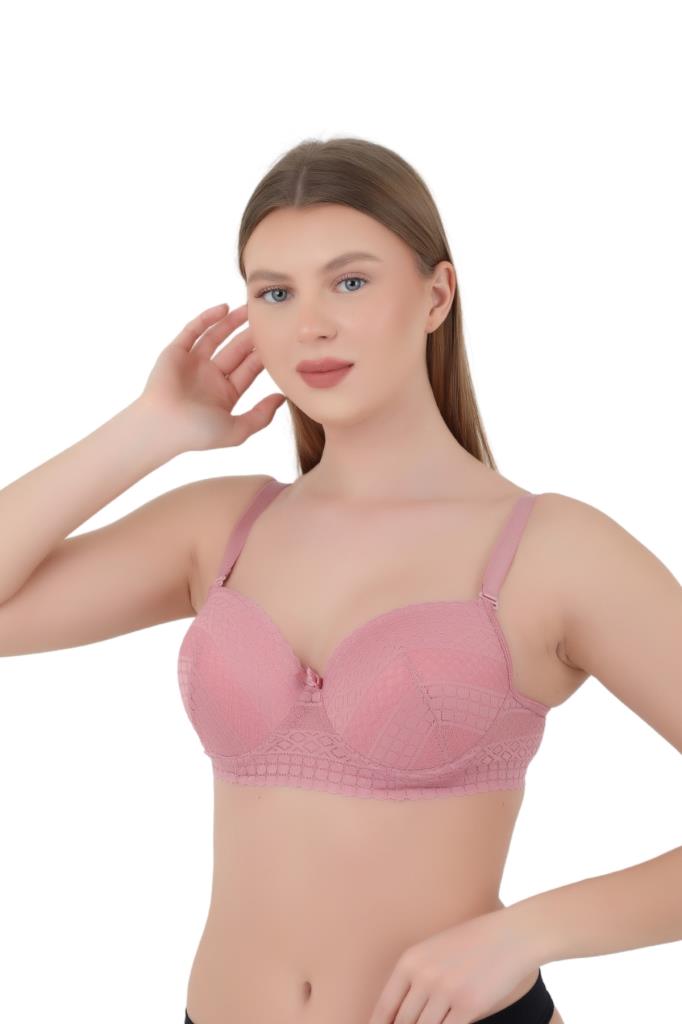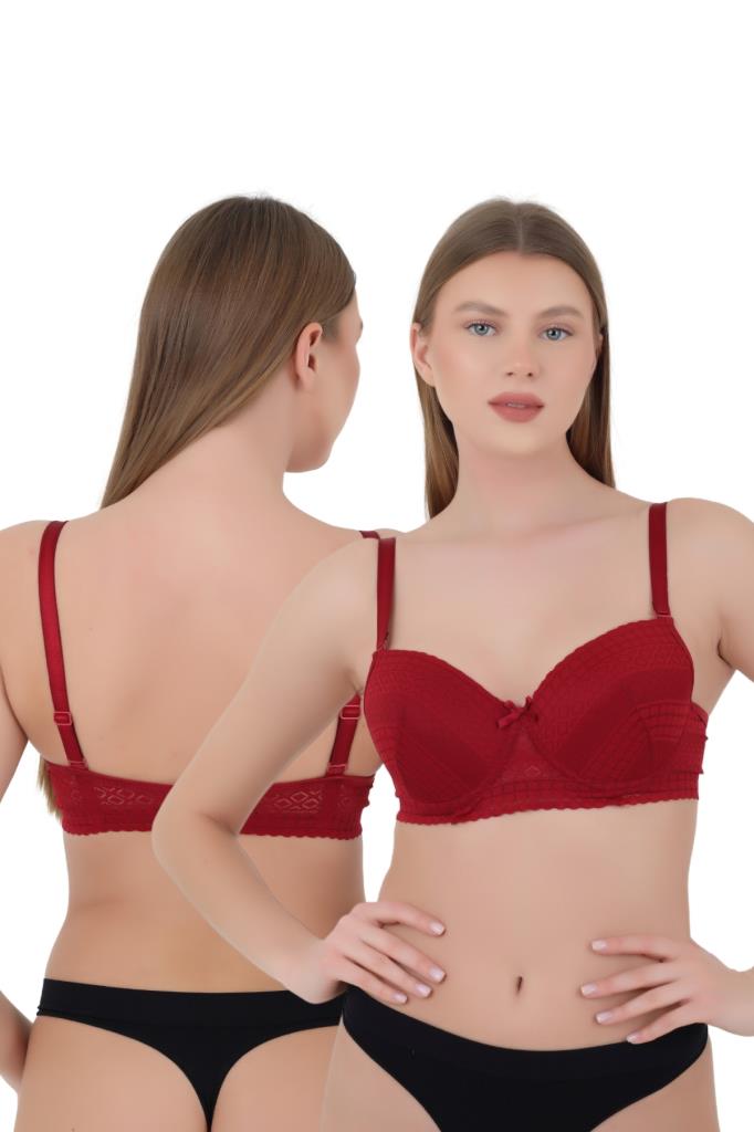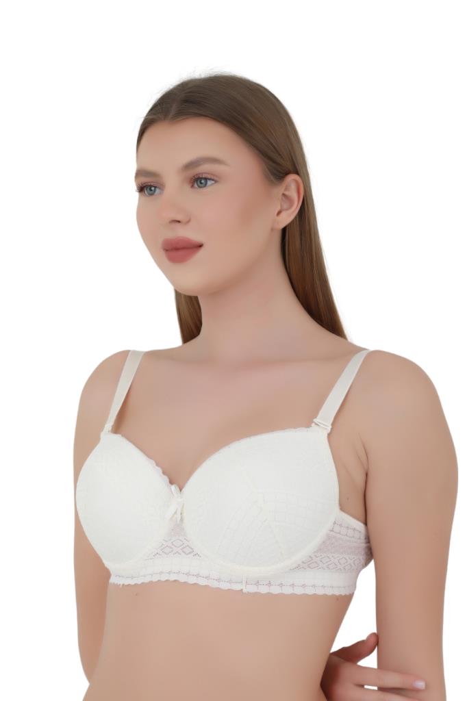 Kadın Sütyen C Cup (Büyük Beden) - Balenli Dolgusuz Dantel Detaylı