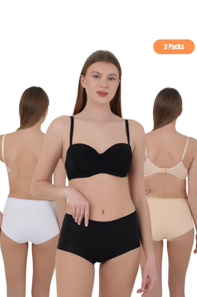 Paket İçeriği: 3 adet yüksek bel külot (Siyah, Beyaz, Ten renk seçenekleri).