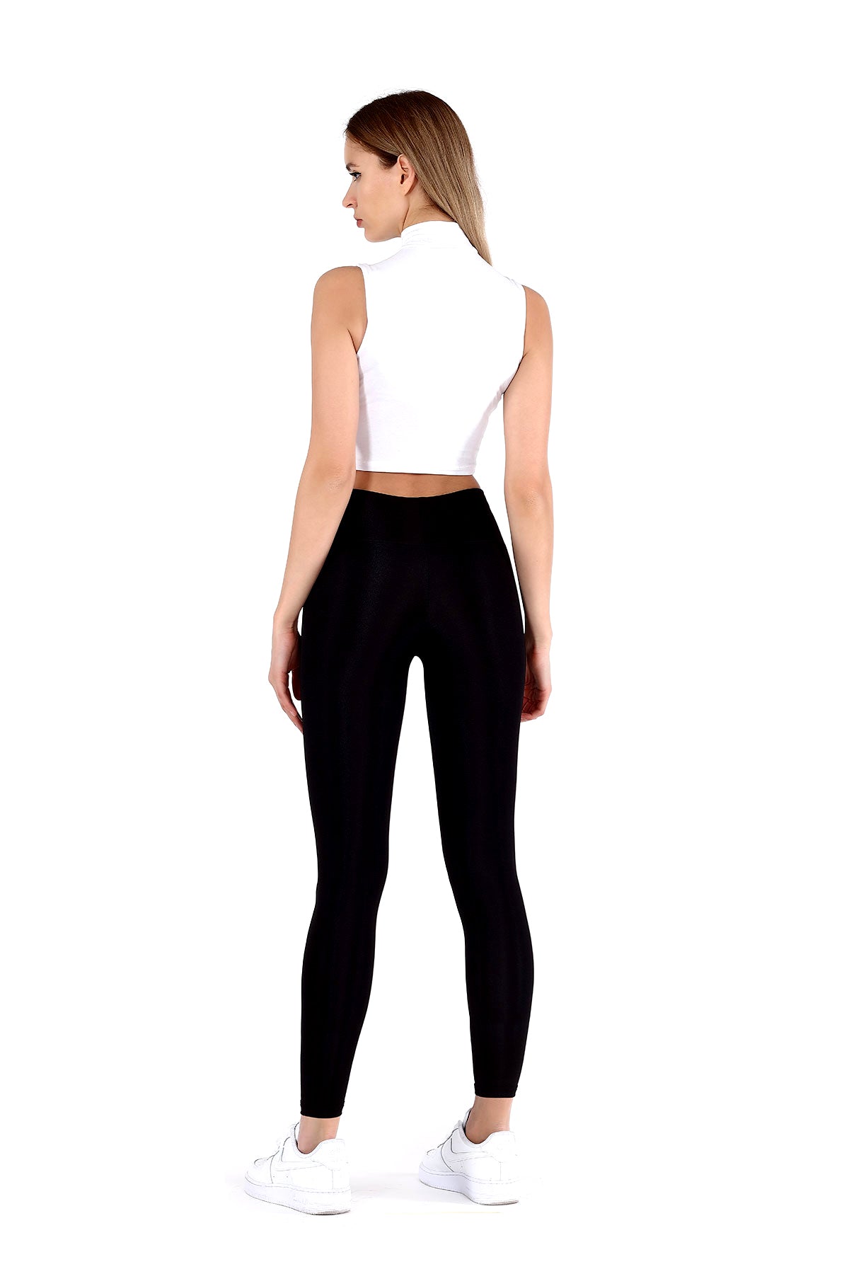 Yüksek bel tasarımı sayesinde bel bölgesinde toparlama sağlayan bu tayt, parlak disko efekti ile de dikkat çekmektedir. Esnek ve rahat yapısı sayesinde spor yaparken ya da günlük hayatta da kullanılabilir.