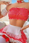 Kırmızı Pitikare Etekli Fantazi Kostüm, eğlenceli ve seksi bir görünüm için mükemmel bir seçimdir. Kırmızı ve beyaz pitikare deseni, nostaljik bir hava yaratırken, etkileyici mini etek ve feminine kesim vücut hatlarınızı zarif bir şekilde ortaya çıkarır. Pitikare detayları ile şık ve seksi bir tarz yaratırken, diz altı etek ve şık tasarımı kostümünüzü baştan çıkarıcı kılar.