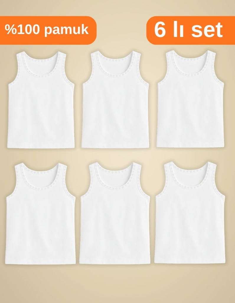 CNT Kız Çocuk Atlet 6' Lı Paket, %100 pamuk malzeme kullanılarak üretilmiştir ve kız çocukları için rahat bir kullanım sunar.