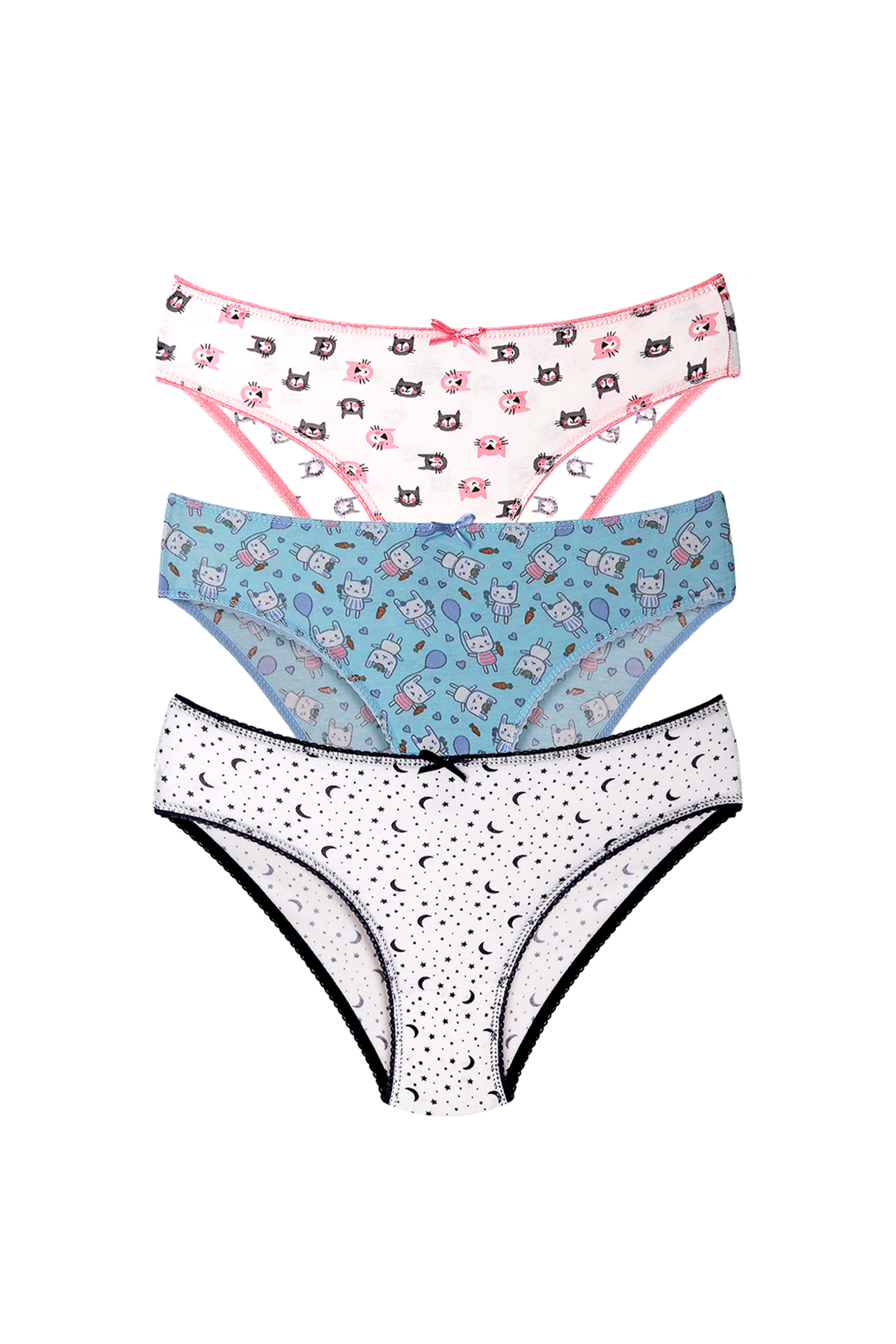 Bu kız çocuk 3'lü karışık-3 desenli külot seti, özel premium paketinde sunulmaktadır. Set içerisinde cat, rabbit ve sky desenleri bulunmaktadır.