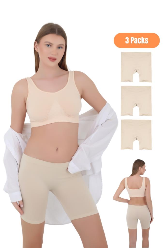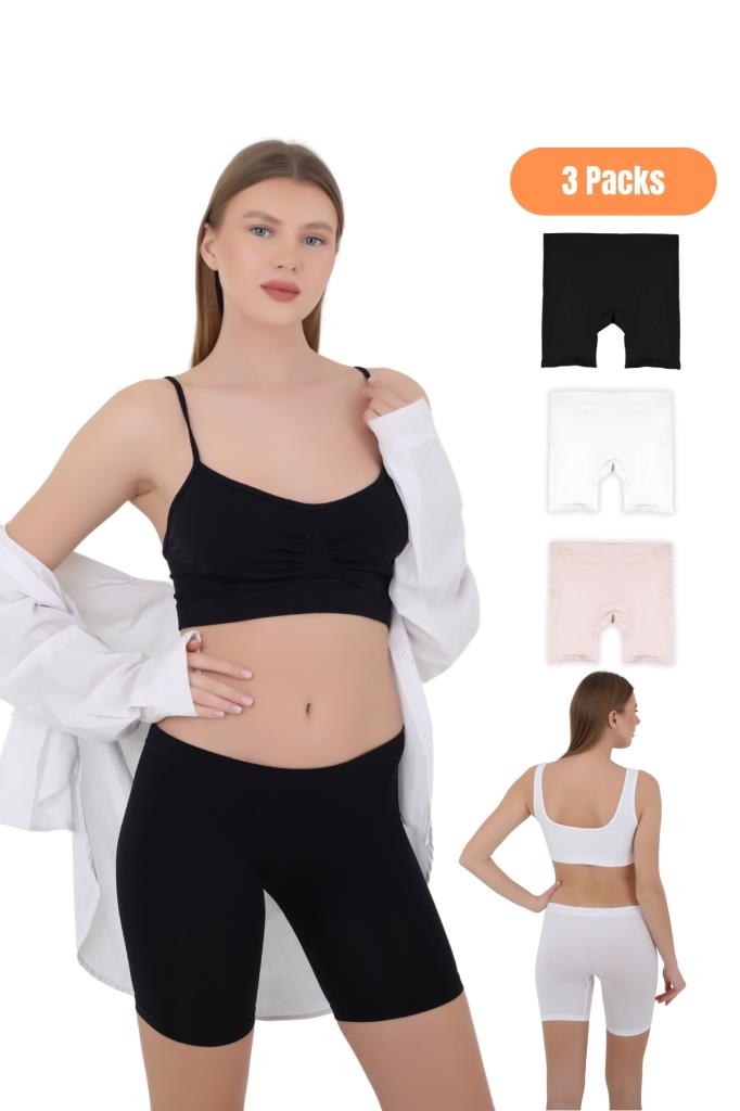 Mikro Fiber Kadın Uzun Boxer 3'lü Özel Paket - Siyah, Beyaz, Ten | S/M, L/XL