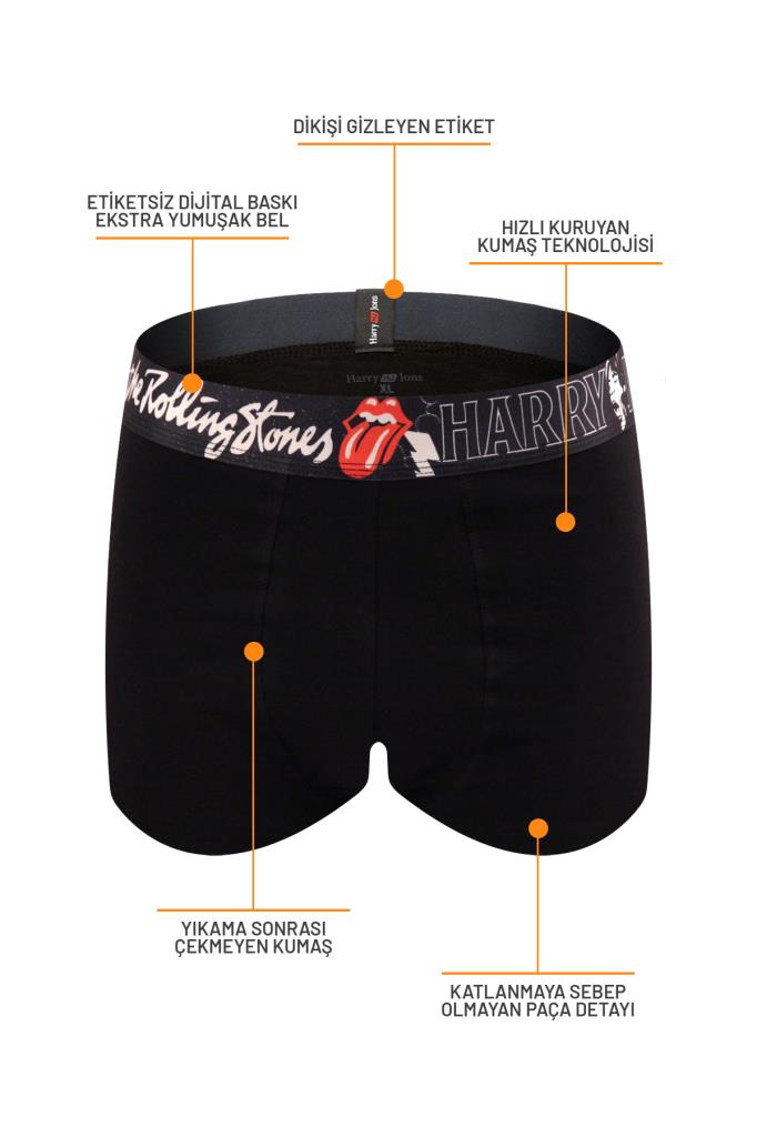 Harry Jons Rock Premium Kutulu 3 Adet Erkek Boxer Hediyelik Kutu, %95 pamuk ve %5 elastan malzemeden üretilmiştir. 3 boxerın tamamı siyah renklidir ve S, M, L, XL ve XXL olmak üzere beş farklı beden seçeneği bulunmaktadır.