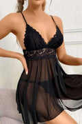 Sabahlık Gecelik Siyah Fantezi Bel Ve Göğüs Güpür İşlemeli Tül