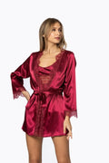 Saten kumaşın dökümlü yapısı, vücuda zarifçe otururken, dantel detaylar feminen bir dokunuş katar. Sabahlık, transparan şifon ve dantel uyumuyla şıklığı tamamlar. Özel günler, çeyiz hazırlıkları ya da kendinize yapacağınız zarif bir jest için ideal.