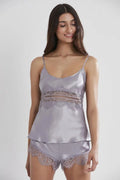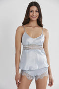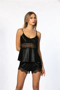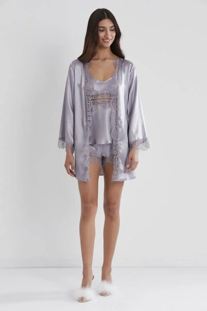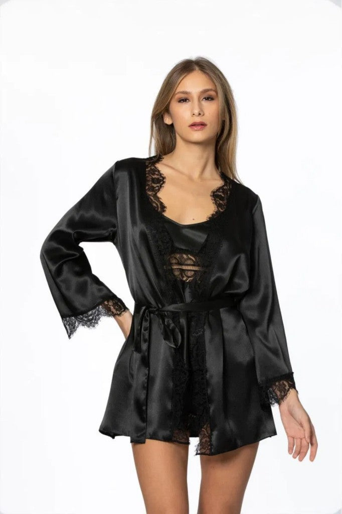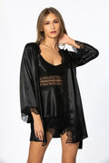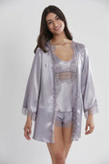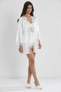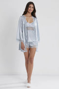 Saten Dantelli 3'lü Şort & Kombi & Sabahlık Takım